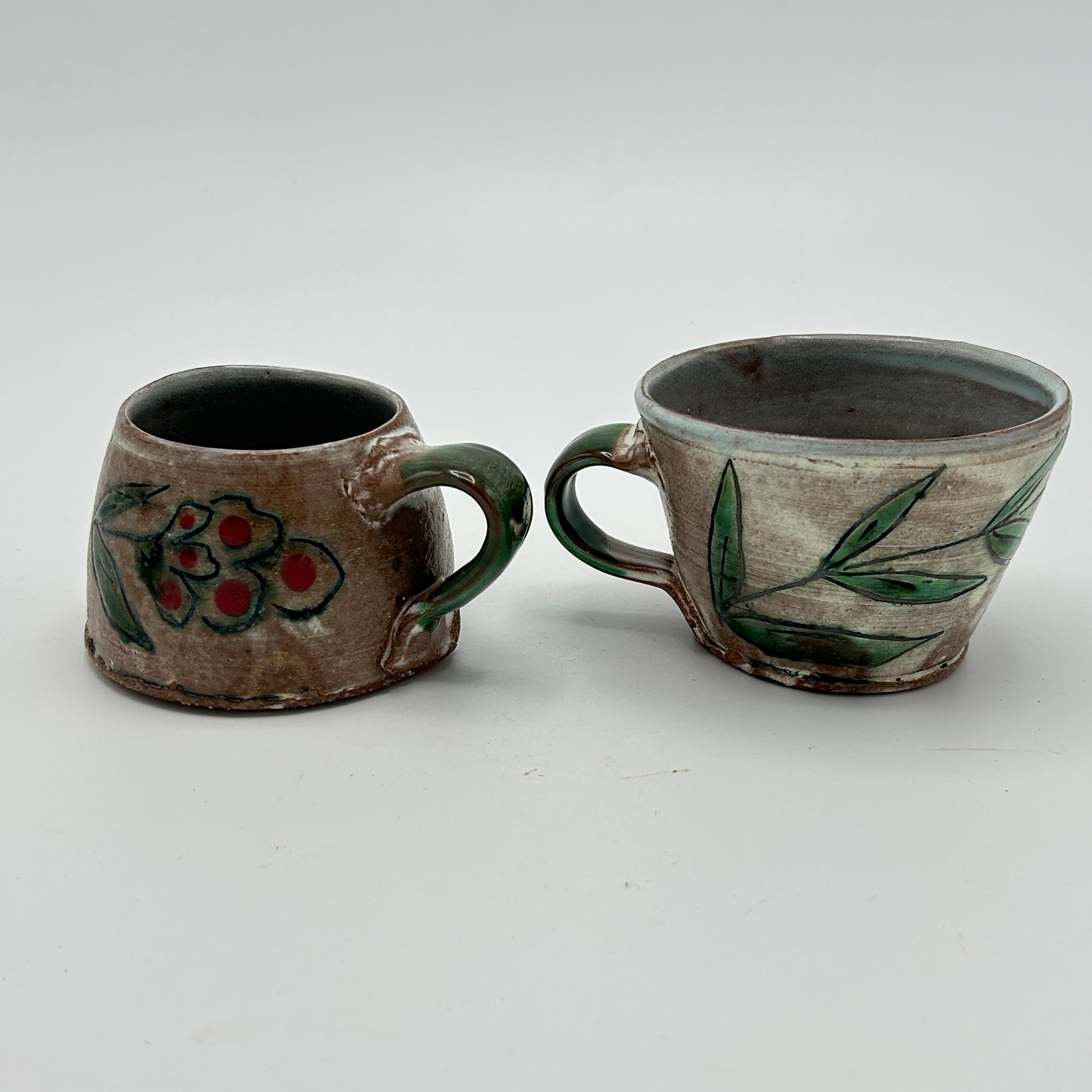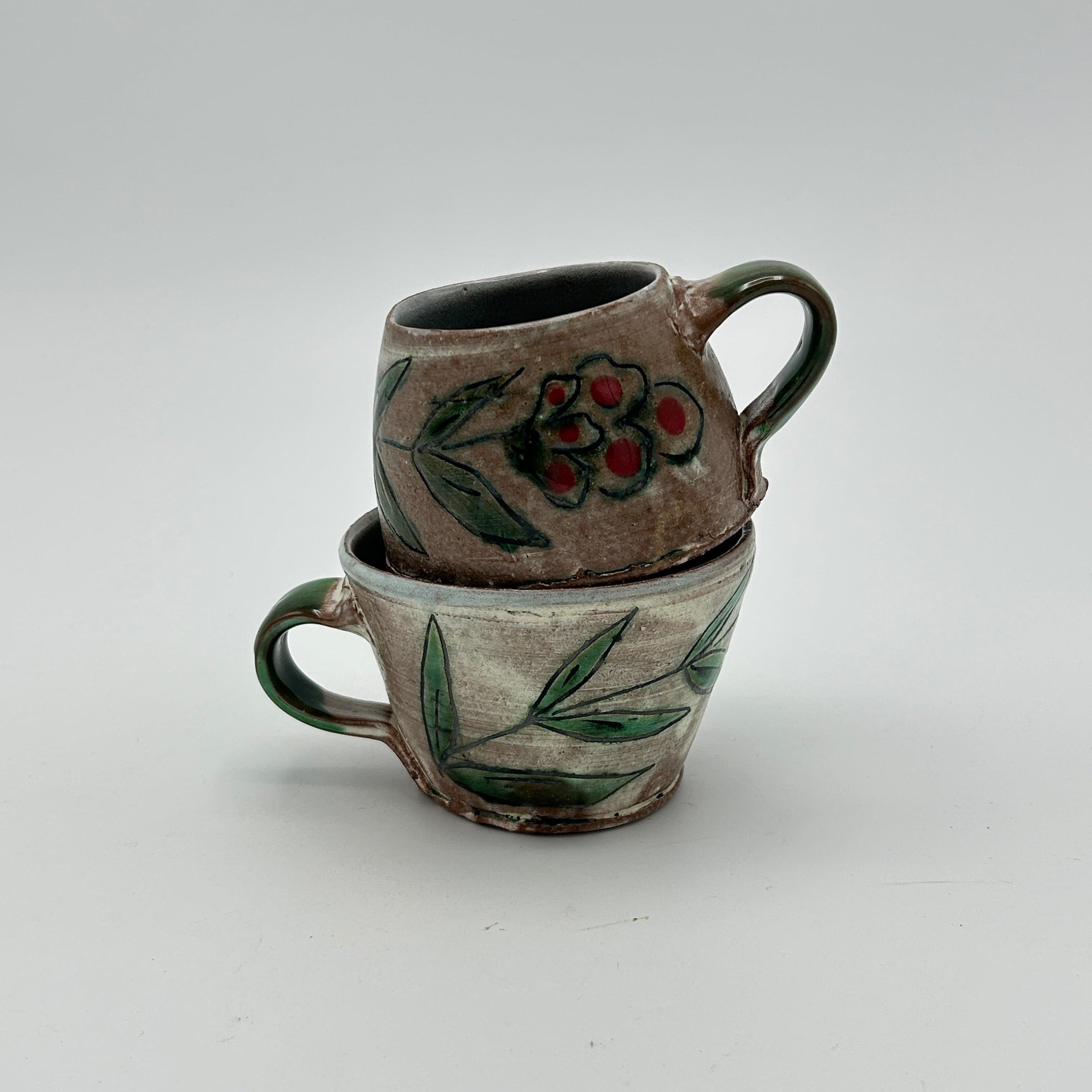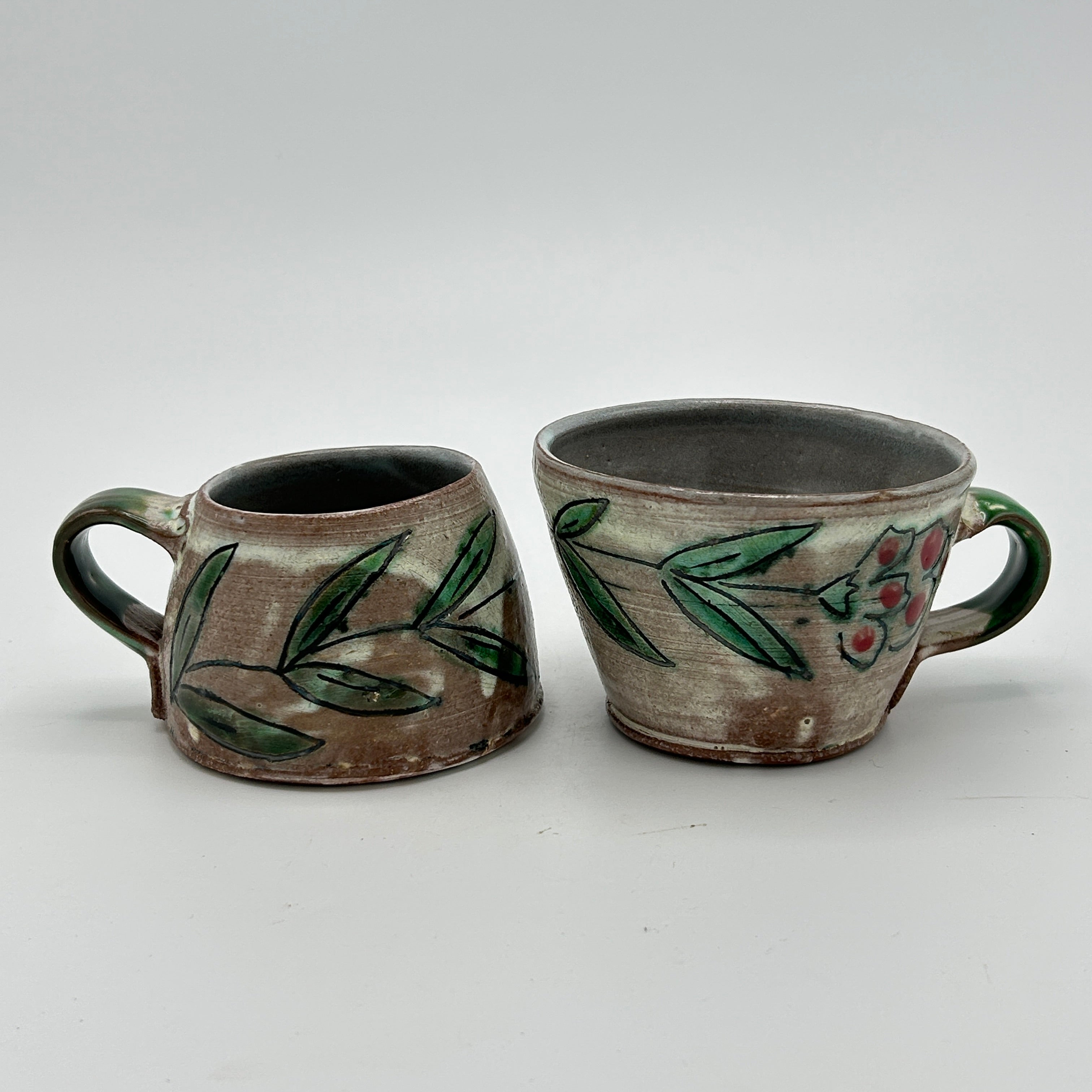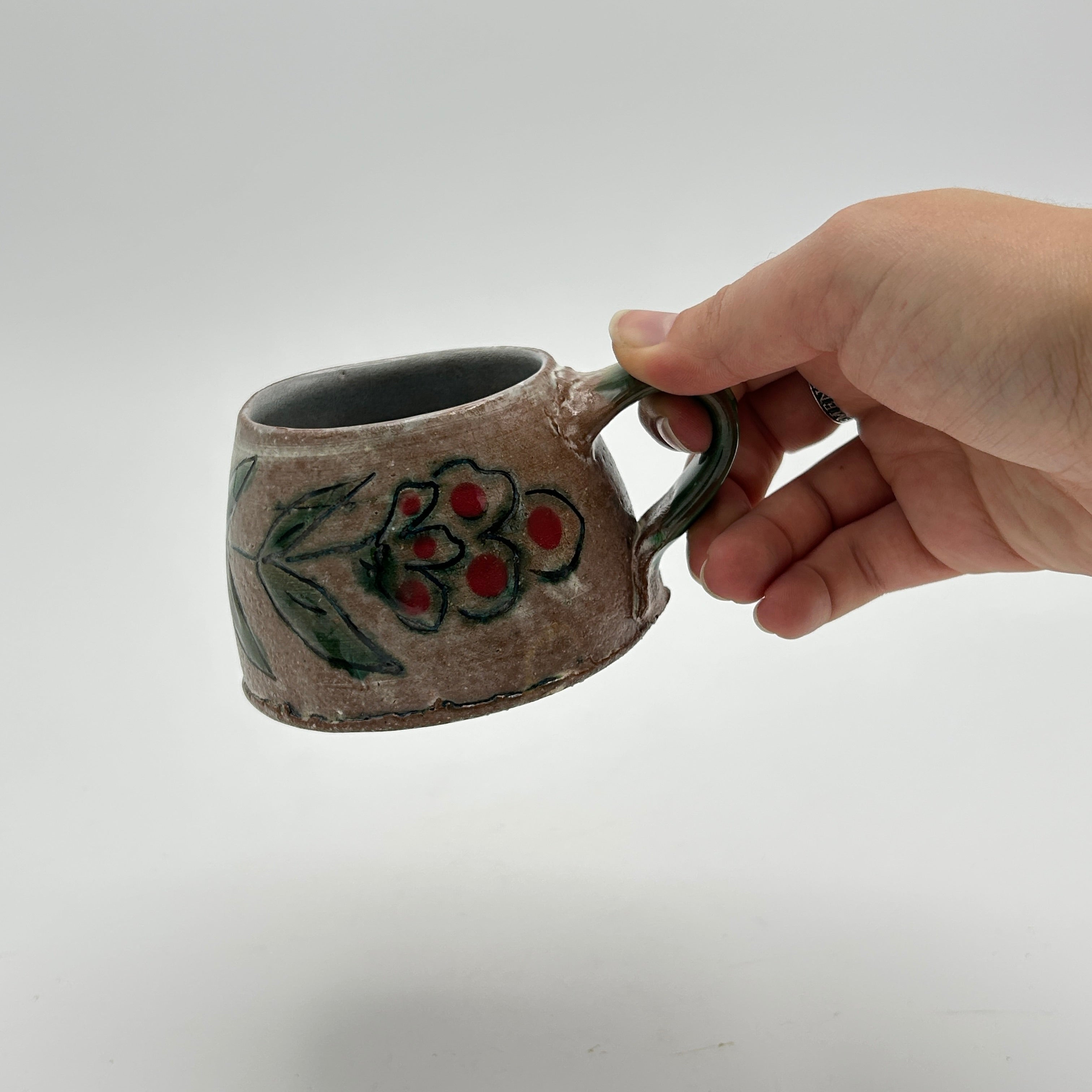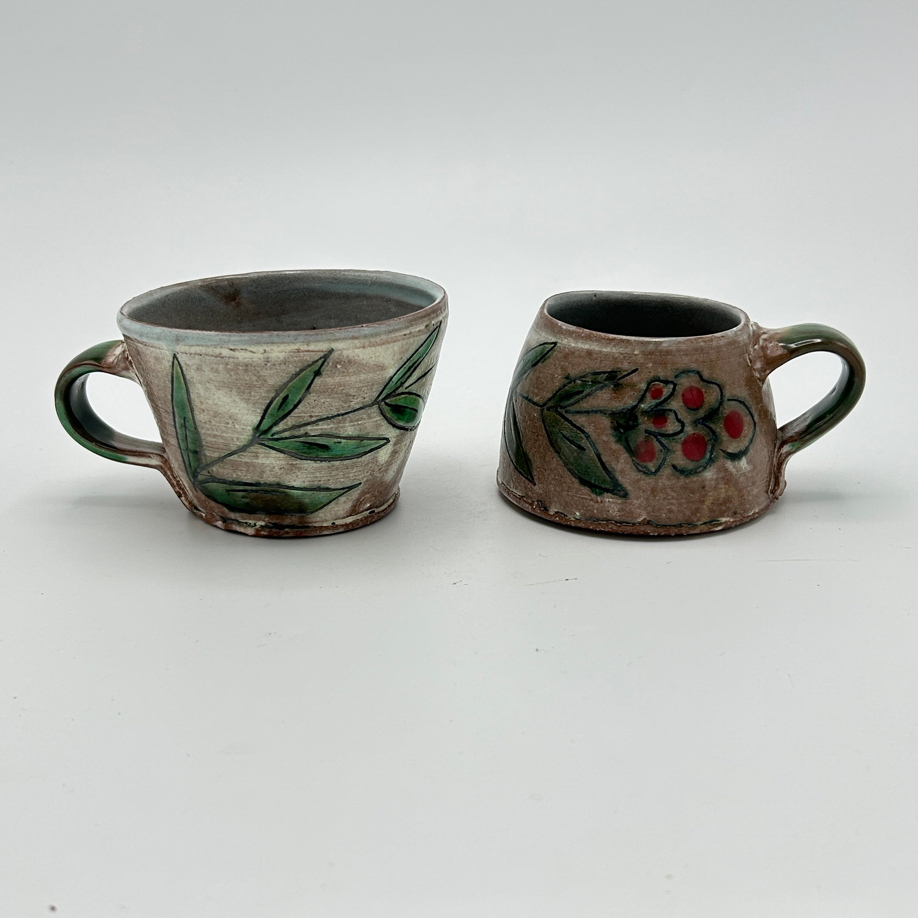narrow mouth mug h: 2.5” w: 4.5” d: 3.5" holds 6.5 ounces