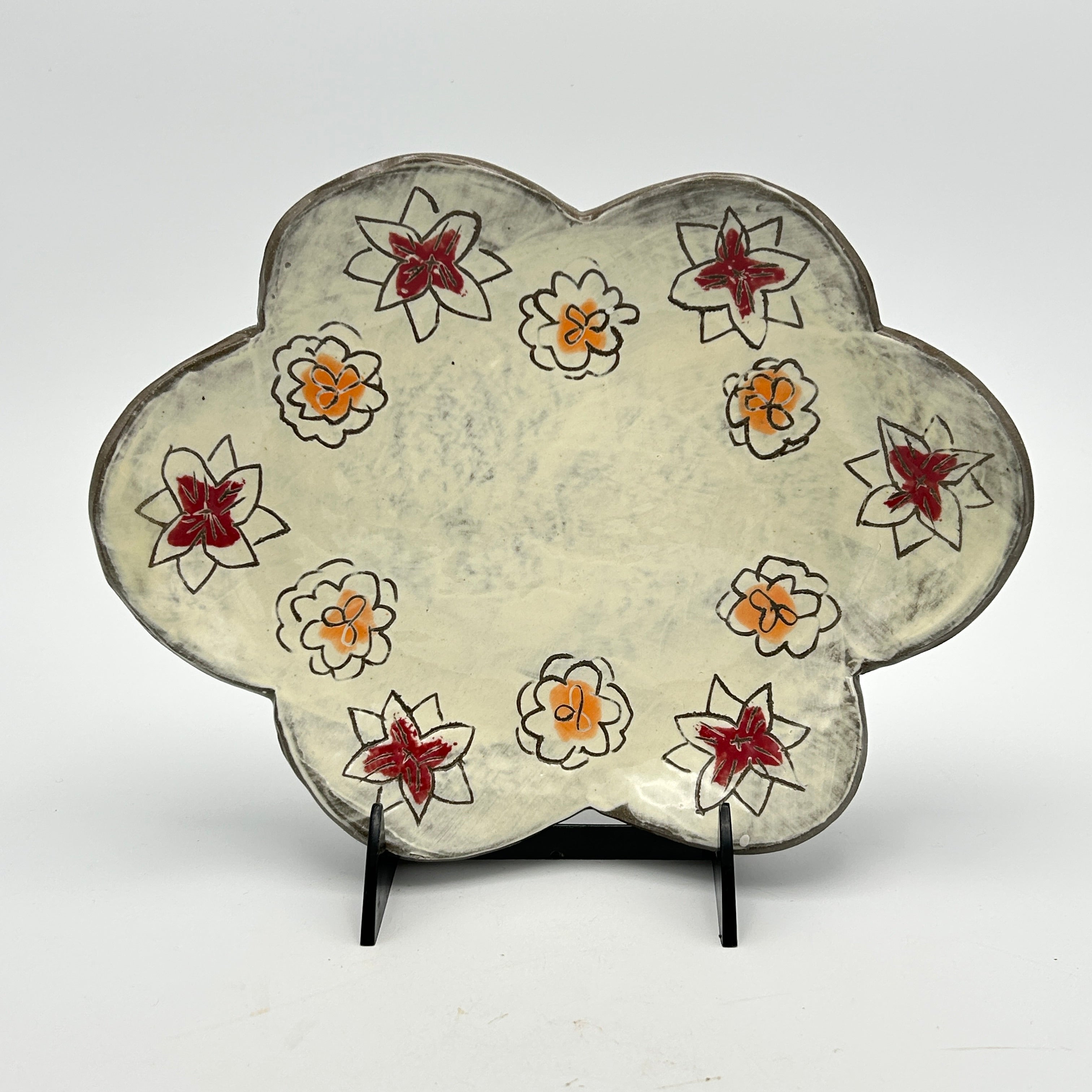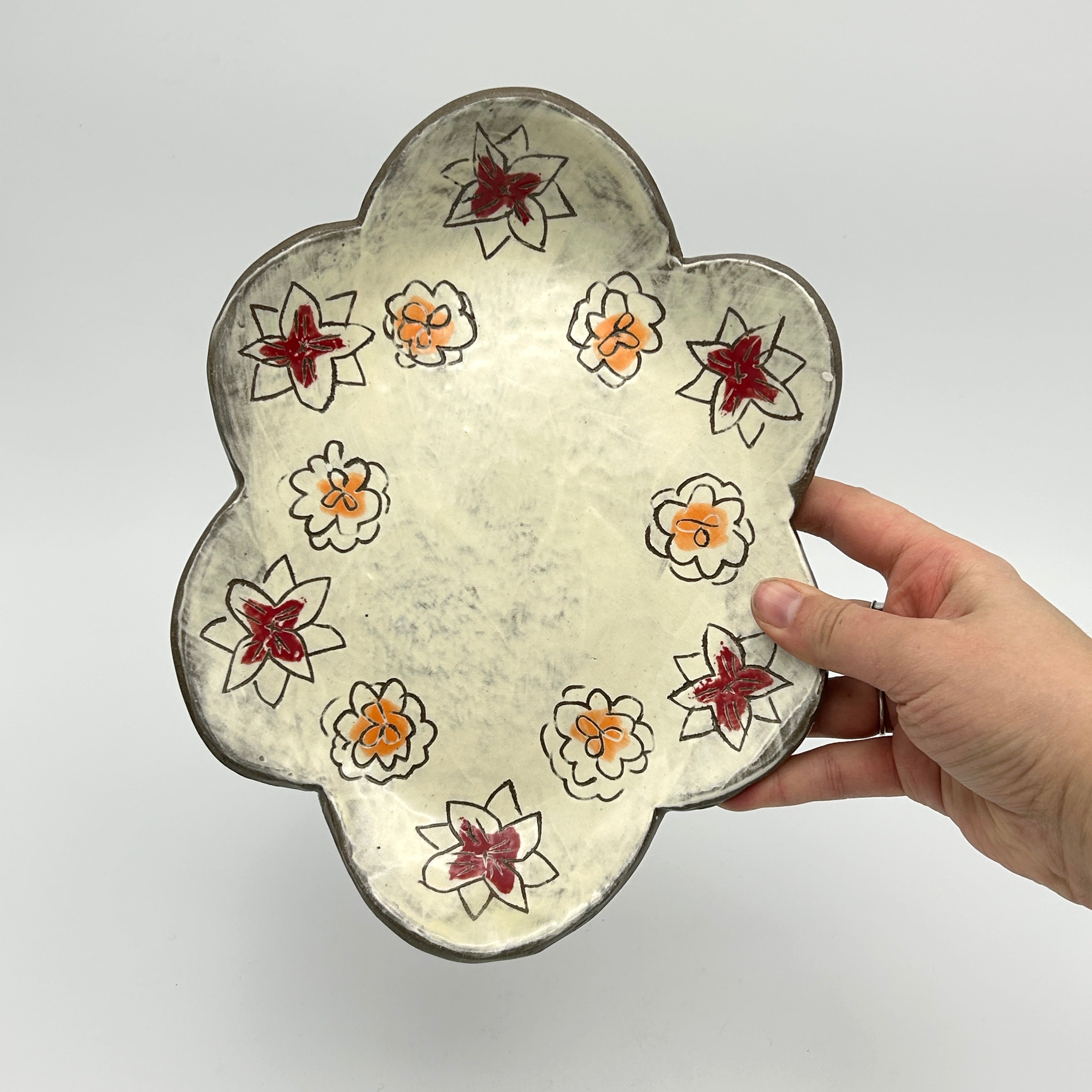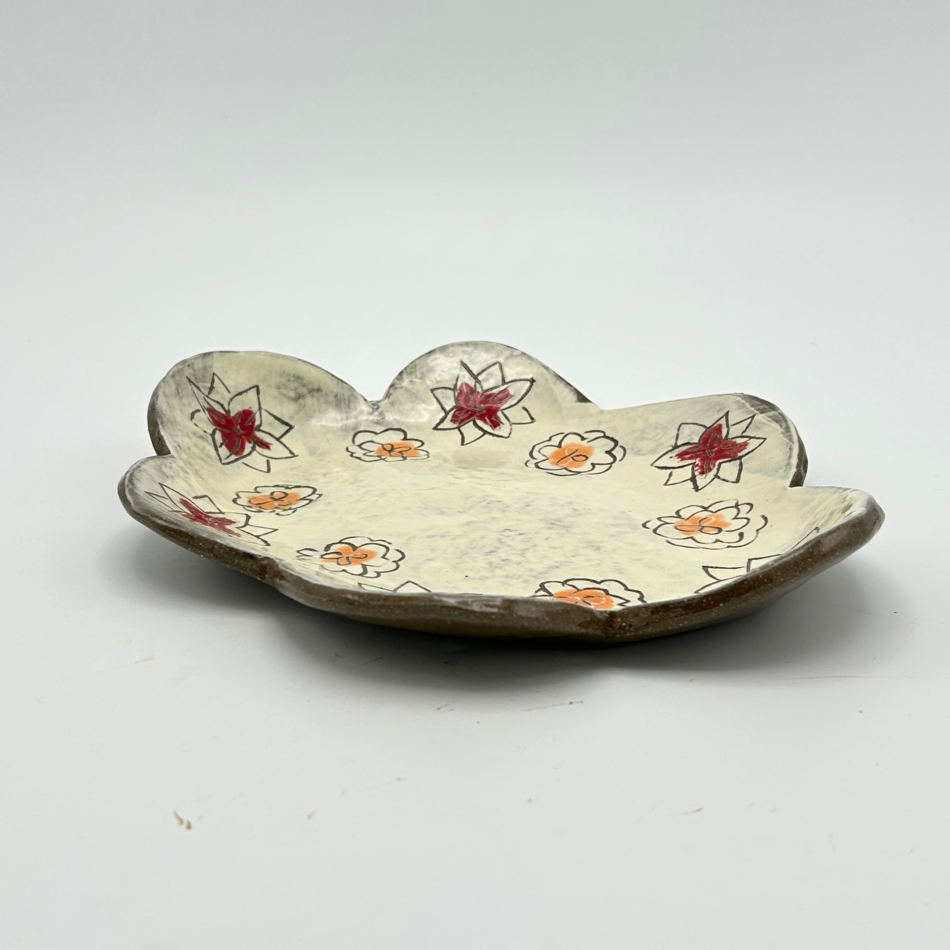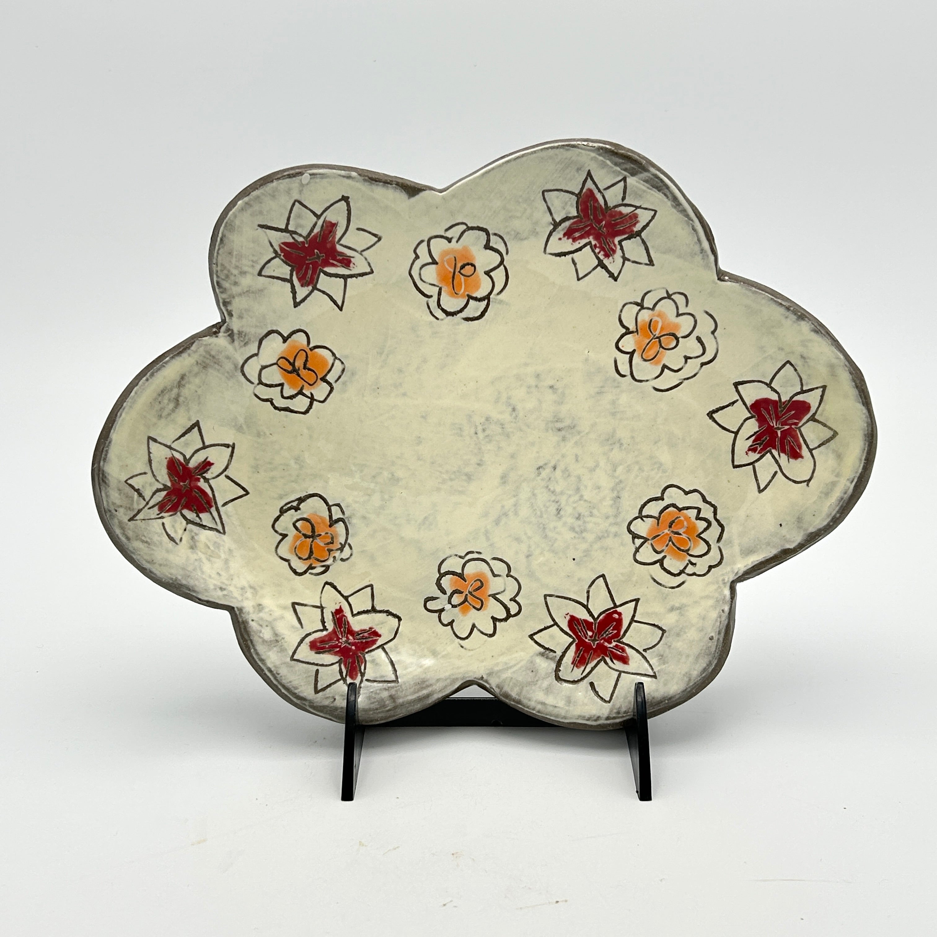 flower field scalloped dish